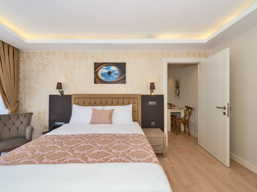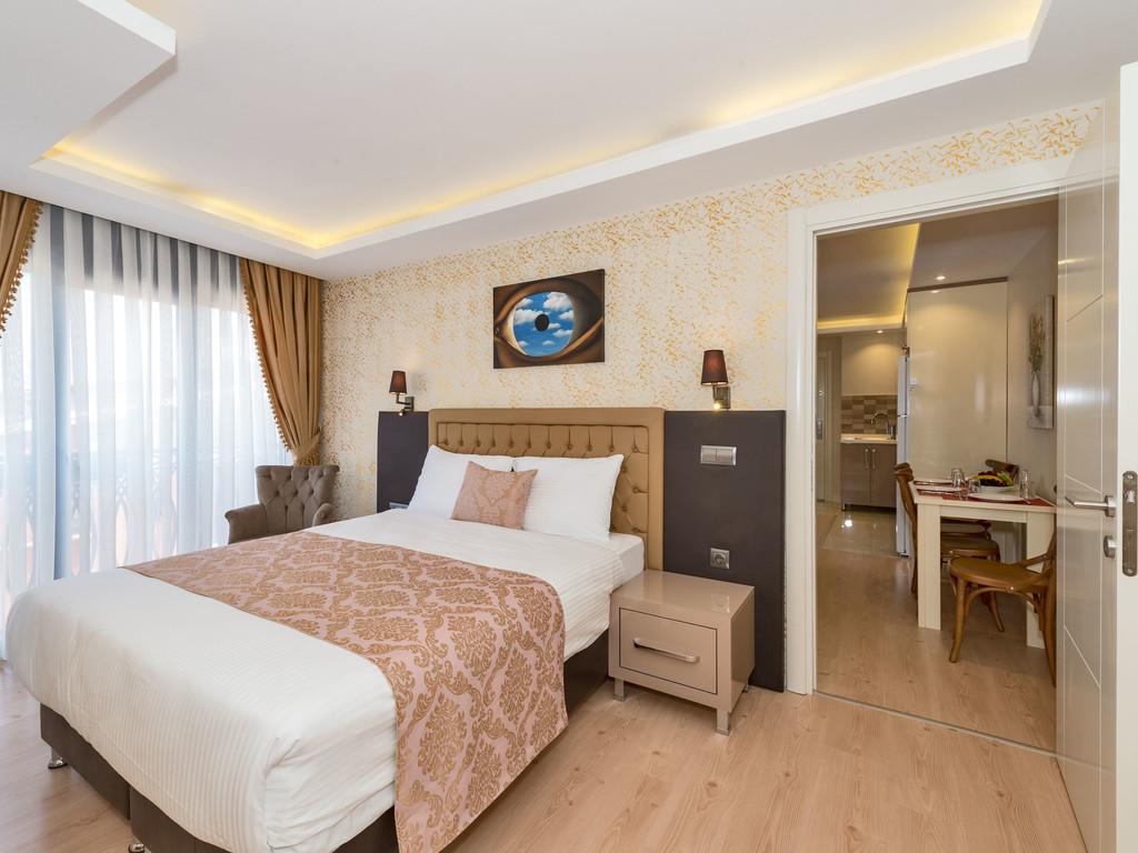 Book NowGen Suites All apartments are self-catering Whether modern furniture and Embedded Products Used Whether a kitchen Must-Have all tools and equipments are available. In addition, all rooms have LED TV, Boz Closet , Oven, Cooker, Air Conditioning, Heating , Tea Maker, Safe, Internal Phone , Remote Shutter 7/24 Hour Internet ( WiFi ) is available free of charge to our guests .Position 2 Unit 1 + 0 ( 22 m2 ), 7 Number 1 + 1 (50 m2 ) and 5 Units 1 + 1 ( 55 m2 ) Deluxe Suite room categories in total 14 room found Gen Suites. You are our guests with a high level of comfort to be able to offer all the details.